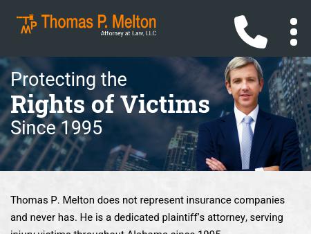 125. Thomas P. Melton, Attorney at Law, LLC Birmingham Injury Lawyer | Premises Liability, Motorcycle Accident Suffered a personal injury? Contact the Alabama law firm of Thomas P. Melton, Attorney at Law, LLC, at 205-458-4556 to arrange a free initial consultation.
