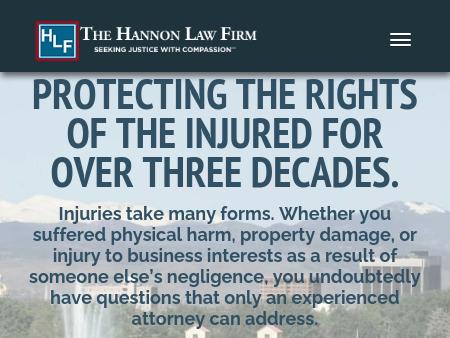 139. The Hannon Law Firm, LLC Denver CO Personal Injury Attorney | Colorado Environmental Law Lawyer The attorneys at The Hannon Law Firm, in Denver, Colorado, represent victims of personal injuries or toxic chemical exposure.
