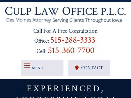 12. Culp, Doran & Genest, P.L.C Des Moines Criminal Defense Attorneys | Iowa Family Law Lawyer | West Des Moines IA Personal Injury Contact the Des Moines, Iowa, violent crimes lawyers of Culp, Doran & Genest for strong representation. Call an Iowa attorney at 877-515-6615.