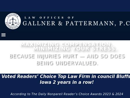 93. Law Offices of Gallner & Pattermann, P.C. Council Bluffs IA Personal Injury Attorney | Omaha Workers Compensation Lawyer | Nebraska Social Sec The attorneys of Gallner & Pattermann, in Council Bluffs, Iowa, are dedicated to helping injured people. Call toll free 888-730-9836. Free consultation.