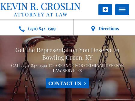 121. Kevin R. Croslin, Attorney at Law Bowling Green Criminal Law Lawyer | Warren County KY Criminal Defense Attorney | Glasgow DUI Defense Contact the Law Office of Kevin R. Croslin, in Bowling Green, Kentucky, at 270-208-4028 to talk with a lawyer about your legal questions and concerns.