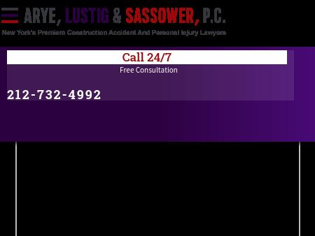523. Arye, Lustig & Sassower, P.C. Construction Accident and Personal Injury Law Firm | New York, NY | Arye, Lustig & Sassower We handle construction accident cases along with general personal injury, medical malpractice, and premise liability. Free initial consults. 800.574.4529.