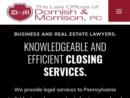 136. Dornish Law Offices, P.C. Business and Real Estate Lawyers | Dornish Law Offices, PC & Dornish Settlement Services, LLC Pennsylvania Law Firm handling business and personal legal matters in the areas of: Real Estate Law, Construction Law, Business Law, Estate Planning and Probate, Title Insurance, Litigation Practices, and Settlement Services.