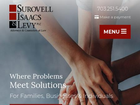 220. Surovell Isaacs Petersen & Levy PLC Fairfax Family Law Attorneys | Loudoun County Criminal Defense Lawyers | Northern Virginia Personal Fairfax Family Law Attorneys. Surovell Isaacs Petersen & Levy. Decades of Experience. Call 703-648-8279. Criminal Defense, Personal Injury, Business Law, Estate Planning, Consumer Law.