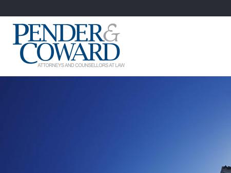 3. Disability Law Group - Pender & Coward P.C. Virginia Business Law Attorneys. The attorneys at Virginia Beach Law Firm, Pender & Coward, have extensive expertise in business law, construction law, intellectual property law, patent and trademark law, environmental law, insurance law, litigation, arbitration, estate planning and much more.