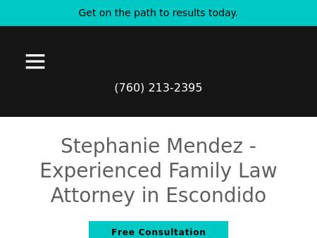 7. Law Office of Stephanie N. Mendez Escondido Divorce Attorney | Legal Separation | Military Divorce If you have a family law, adoption or security clearance legal issue contact Stephanie Mendez at 760-542-6065 for a free consultation. Responsive