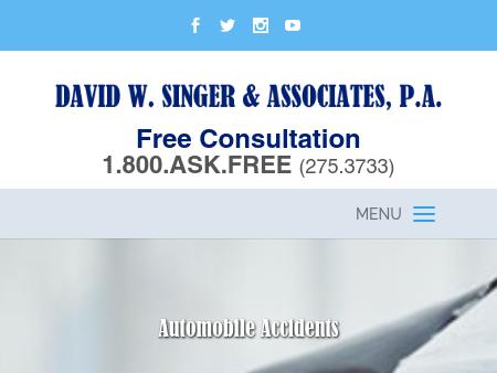 13. Law Offices of David W. Singer & Associates, P.A. Hollywood Personal Injury Law Firm & Attorneys | 1800AskFree.com David Singer & Associates are fully dedicated to all areas of personal injury law such as auto accidents, workplace injuries, and medical malpractice cases in Hollywood.