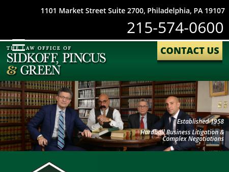 57. Sidkoff Pincus & Green Philadelphia Business Lawyers | Philadelphia Trial Attorneys Our Philadelphia business lawyers have been representing individuals, businesses and corporations since 1958 in various litigation matters. 215-574-0600